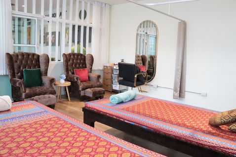 "A comfortable waiting area with a variety of drinks and snacks, along with souvenirs for you to take home as a memento."